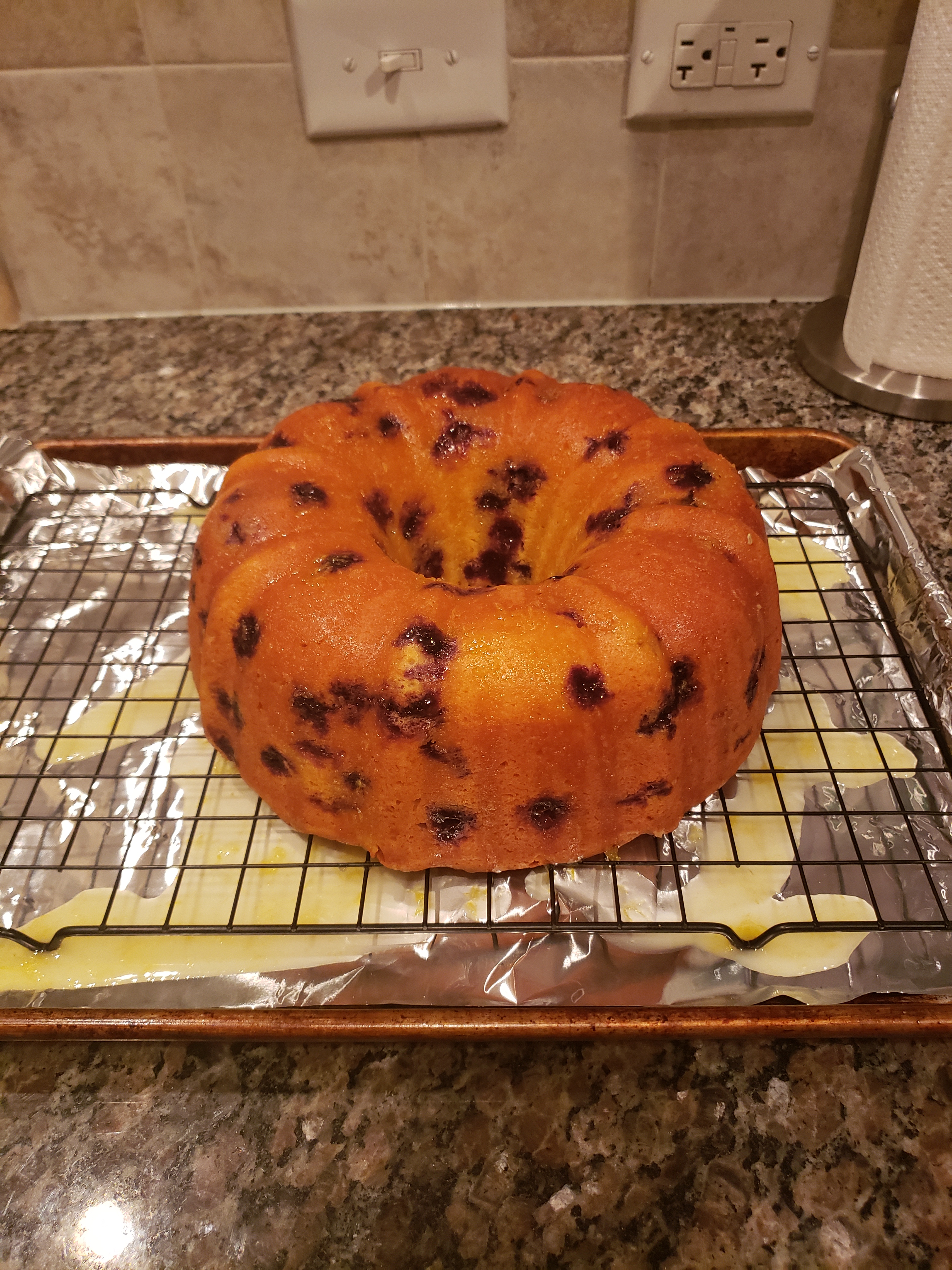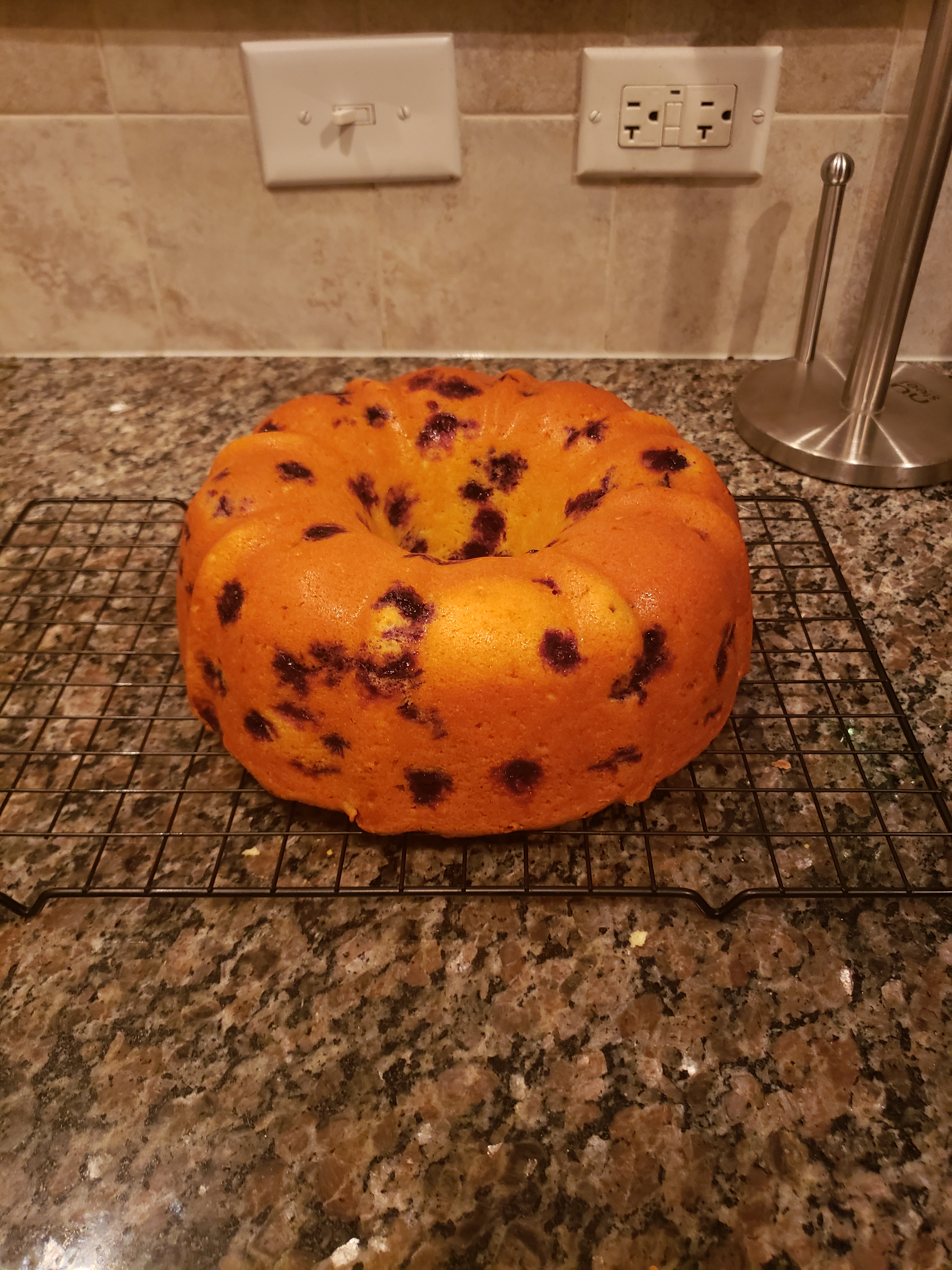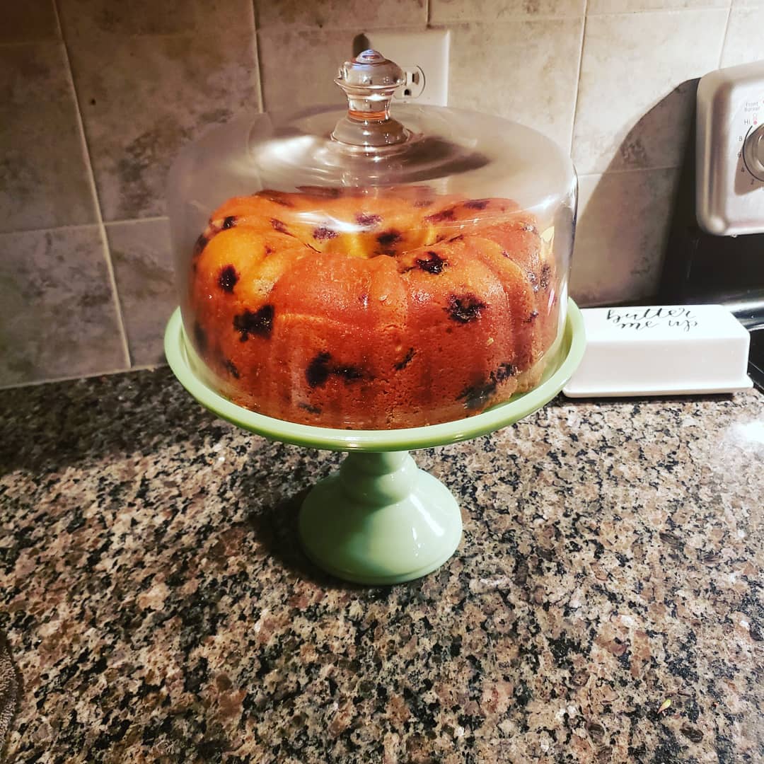 For this recipe I used a 12 inch bunt pan. Be sure to grease your pan really well then pour your batter into the prepared pan, spreading evenly. Bake for 1 hour and 15-25 minutes or until a toothpick inserted near center of cake comes out clean. Cool in pan on a wire rack for 10 minutes. Remove from pan and let it finish cooling before icing.