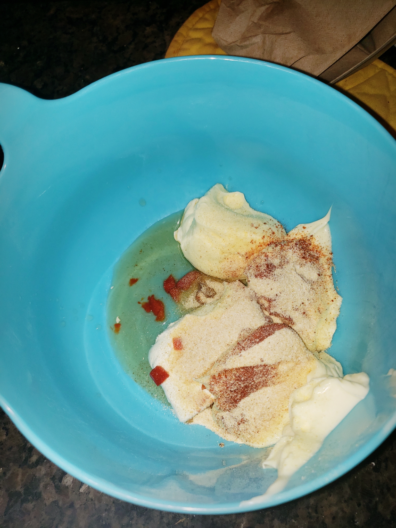 To start, I cut my jalapenos in half and remove the seeds. Once I’ve done that, I dice them and sit them to the side. Next, I mix my cream cheese, mayo, pimento juice, smoked paprika, paprika, onion powder and garlic powder together with a hand mixer. I like using my hand mixer for this because it ensures its clump free creaminess. Once it is smooth, I toss in a jar of pimentos. If you’re adding jalapenos or other peppers, now is when I would add those as well.