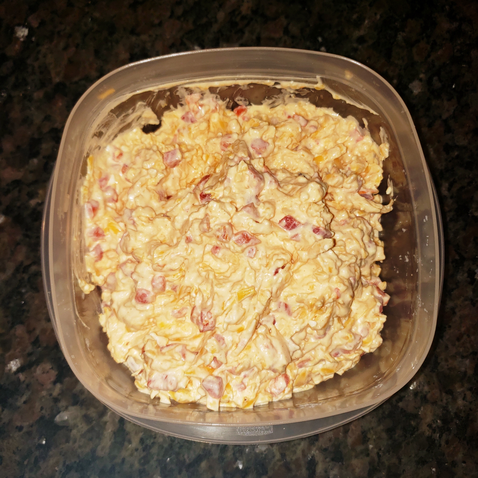 Cut jalapenos in half and remove seeds. Next, dice them and set them aside. Using a hand mixer blend mayo, cream cheese, seasonings and 1 jar of pimento juice (set the pimentos in the jar to the side) and blend until smooth with no clumps. Next add the jar of pimentos you drained and the second jar of pimentos (juice and all) and blend again. If you’re using block cheese, shred your cheese. Pour the wet mayo mix over top and use the hand mixer to blend everything together. Store in a sealable container and keep refrigerated.
